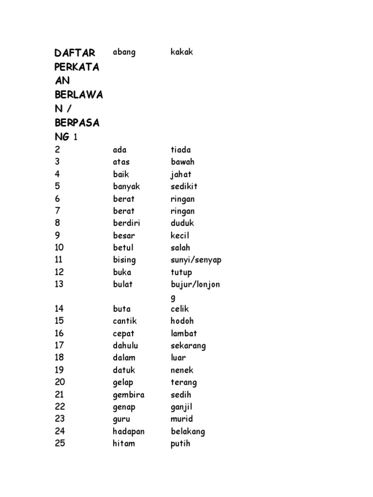 Bahagian Atas Perkataan Berlawan Bahasa Melayu